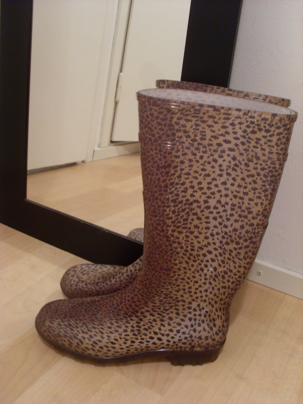 Ett par leopardfärgade gummistövlar! Kunde inte motstå att köpa dem. "Nya" stod det på prislappen också. De är ganska tunna, inget foder, så jag får nog vänta med att använda dem tills vårslasket kommer.